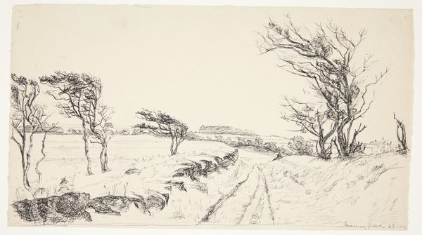 Fritz Syberg drew this landscape with oak trees in Føns, sometime around 1908. It's all about line, isn't it? Like a spider web, the drawing is built up from these marks made with a pen. For me, that's the best artmaking, when you can see the process. Look at the way he uses these tiny little hatching marks to create areas of shadow and depth. It's almost like he's knitting the landscape together. What I love about these drawings is that you can see the artist thinking, working through problems right there on the page. Syberg isn't trying to hide anything from us. He's saying, "Here's how I see the world, one line at a time." Reminds me of Van Gogh and his reed pen drawings. There's a similar energy, a similar love of the landscape. But where Van Gogh is all about emotion, Syberg feels more grounded, more rooted in the earth. Anyway, there's always more to see, more to think about with every view.