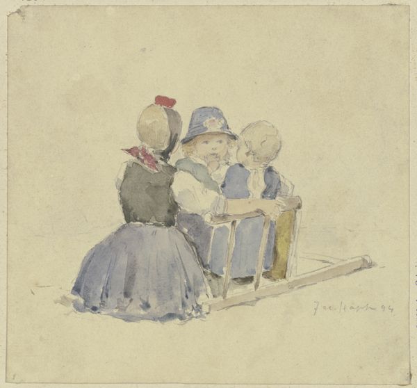 Peter Fendi created Children on Their Way to Work in the Fields using watercolor, a medium that lends itself to capturing fleeting moments and the effects of light. The loose, transparent washes and delicate brushstrokes contribute to the overall impression of fragility and vulnerability, mirroring the children's circumstances. Look closely and note how Fendi skillfully renders the weight of the children's labor with the soft, flowing lines of the watercolor. There is a poignant contrast between the innocent faces and the heavy baskets they carry. Fendi masterfully conveys the emotional weight of this scene through his handling of the materials, elevating the artwork beyond mere representation and prompting reflection on the broader social context of child labor. It reminds us that artistic choices are always intertwined with the world we inhabit.