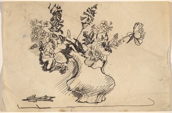 Mark Rothko made this simple 'Sketch of Plants' using ink on paper. The immediacy of the medium is very clear; the fluidity of the ink allows for quick, gestural marks that capture the essence of the plant's form with minimal detail. The choice of ink and paper highlights the raw quality of the sketch. Rothko’s mark-making seems effortless, yet each stroke defines shape, texture, and weight. The thin lines create a sense of lightness, contrasting with the denser, shaded areas that suggest depth and volume. The translucency of the ink allows the paper's texture to show through, adding another layer of visual interest. While Rothko is best known for his abstract color field paintings, this sketch reminds us of the importance of process in his broader practice. It is through the directness and simplicity of the materials that he was able to find meaning in his practice. The act of making, the physical engagement with materials, is central to understanding the artwork's significance.
