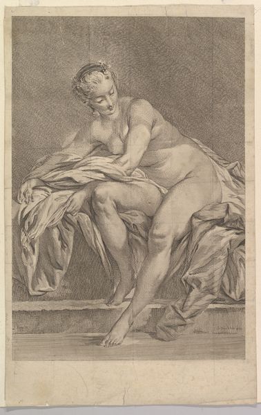 Editor: So, here we have "Leda and the Swan," an engraving by Giulio Bonasone from the mid-16th century, part of his series, ‘The Loves of the Gods.’ It's got this intense, almost unsettling feel to it. All the figures look as if they are twisting and full of restless energy. How do you interpret this work? Curator: Restless, yes, exactly! It's Mannerism, all elongated forms and elegant unease. For me, the scene plays out like a half-remembered dream – or a nightmare. Leda's pose is so artificial, that swan so…clingy. It lacks the classical grace you might expect, wouldn't you say? And then the hatching and engraving marks add to the intensity of the moment and heighten the sexual overtones in the print. Editor: The almost scratchy lines definitely add to the feeling of unease! I can't imagine how shocking this print would be during the Renaissance. What's interesting is how desexualized modern day view on reproduction is... Curator: Shocking, subversive, yes. It makes me think of Ovid's stories… where gods were very dangerous playfellows! Do you think Bonasone tried to capture some of that inherent danger, some kind of tension in it all? He may not have meant anything... but in reality, does that ever matter for art and beauty? Editor: It certainly feels that way. The god as animal and almost suffocating! Now that you mention Ovid it gives it more profound insight to me, like he depicted a tragic scene as a tale of romance. Curator: Right! Myth-making. That’s a great way to describe it and look at it! A lot to take from just one relatively small picture, huh? Editor: Totally. There are countless lenses to understand each work with. Thanks!