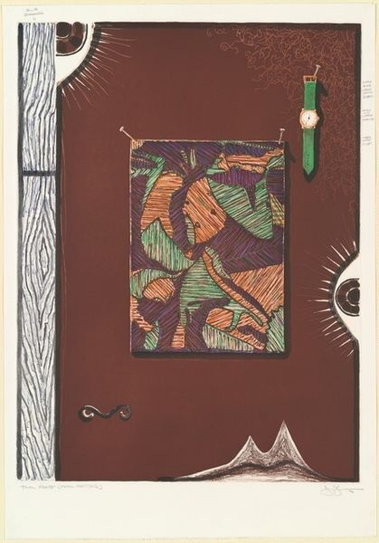 Editor: Here we have Ruth Barnes' "Coverlet (Applique Quilt)" from around 1936, rendered in watercolor and drawing. It strikes me as a curious composition—a series of quilt-like squares filled with abstracted forms. How do you interpret this work, especially given its title suggesting a domestic object? Curator: The title is key. Knowing it depicts a coverlet invites us to consider the historical context of quilting, traditionally a domestic activity often associated with women's labor and communal effort. These textiles, made in the home and usually collaboratively, transcended being functional pieces; they served as crucial outlets for women's creativity, storytelling, and even covert political expression. How does the use of watercolor, a typically 'feminine' medium, play into this narrative? Editor: It reinforces that connection to domesticity and the traditional arts associated with women, perhaps? Curator: Precisely. Barnes may be highlighting and subverting traditional gendered artistic hierarchies. The geometric abstractions, instead of representational scenes often found in quilts, invite us to reflect on the power of abstraction as a way for women artists to express complex ideas outside the dominant male gaze. What feelings arise when you consider this piece within the history of craft and feminist art? Editor: A sense of reclaiming domesticity, maybe? It’s taking something historically undervalued and reframing it as powerful and intentional art. Curator: Absolutely. By understanding the social and gendered context in which Barnes created this piece, we can appreciate how she elevated a functional object to a sophisticated commentary on women’s creative and political agency. Editor: I hadn't thought about it that way, framing this as a work that defies social and cultural boundaries while creating art. It feels way more powerful now!