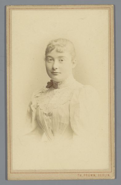 Curator: What strikes me about this daguerreotype, formally, is the incredibly soft light, particularly diffused around the young woman’s face. The sepia tones add to its gentle, almost ethereal quality. Editor: Indeed. This portrait, dating roughly between 1865 and 1890 and titled "Portret van een onbekende jonge vrouw," is fascinating in what it tells us about the democratization of portraiture in that period. Photography was becoming more accessible, moving beyond the realm of the wealthy elite. Curator: I’m intrigued by the composition itself. Note how the photographer frames the subject; her slightly averted gaze and simple, elegant clothing direct us right back to that pensive expression. Editor: And the standardization of portraiture is significant here, too. Similar poses, clothing, and backdrops were repeated across studios as photography became a commercially viable practice. Consider the sitters – this wasn't only a visual representation of that specific individual, but also reflected a statement about their place in society. The "genre painting" theme suggests aspirations of fitting into or representing a specific group. Curator: Agreed. The limited tonal range actually draws attention to the subtleties of texture, like the braiding in her hair and the sheen of her ribbon, details easily lost in a sharper image. Editor: Exactly, and analyzing images such as this gives art historians a richer understanding of not only who this was, but about socio-economic conditions in Paris in the latter half of the 19th century. That studio on Passage du Havre was capturing a moment in visual culture history. Curator: Looking at the artist’s careful control of tonal range and the arrangement of form makes it an intimate window, don't you think? Editor: It reminds us of how accessible and essential photography became for expressing aspirations. Curator: A fascinating look at form and practice joining together. Editor: A cultural moment, forever etched in time!