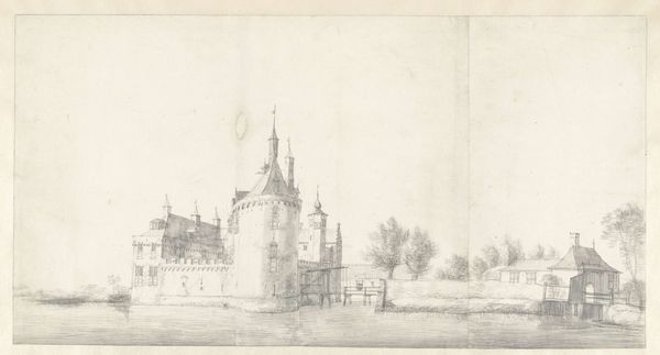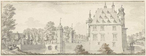 This drawing captures Kasteel De Parck te Elst with ink on paper by Abraham de Haen the Younger. The castle, with its stepped gables and tower, stands as a powerful symbol of authority and societal order. The verticality of the structure, reaching towards the sky, echoes the ancient human impulse to connect with the divine, a theme found in the ziggurats of Mesopotamia and the soaring cathedrals of Europe. The castle as a fortified space also recalls the psychological need for safety and protection, a primal instinct reflected in the walls and enclosures throughout art history. The motif of enclosure has a history dating back to the Paleolithic era, from cave paintings to modern art. The need for safety and territorial control shapes the human psyche, reappearing in the collective consciousness across time. It is this recurring motif that continues to engage the subconscious, reminding us of our innate desires and historical roots.