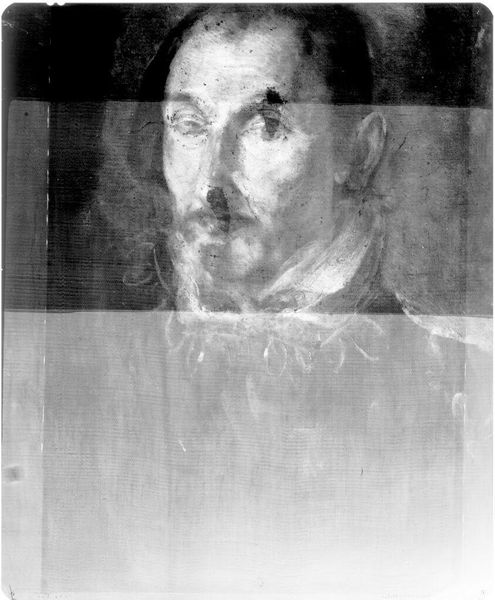 Editor: This is an X-radiograph of "Governor William Greene" by Peter Pelham. It's fascinating to see the painting's structure beneath the surface. What can this radiography tell us about the original artwork and its historical context? Curator: X-radiography offers a glimpse into the artist's process, revealing hidden layers and alterations. It's a powerful tool for art historians to understand the socio-political forces at play during the creation of the portrait, influencing Pelham's choices. Editor: So, it's like a behind-the-scenes look at art history itself? Curator: Precisely. It allows us to question the artist's intentions and the reception of the work within its time. It speaks volumes about the cultural value placed on portraiture and its role in shaping public perception. Editor: I never thought about it that way. Thanks for sharing your insights! Curator: My pleasure! It is really helpful to question how museums shape how we view it today.