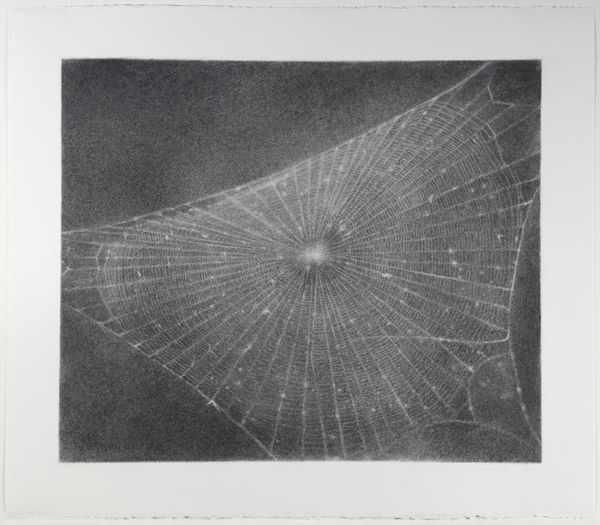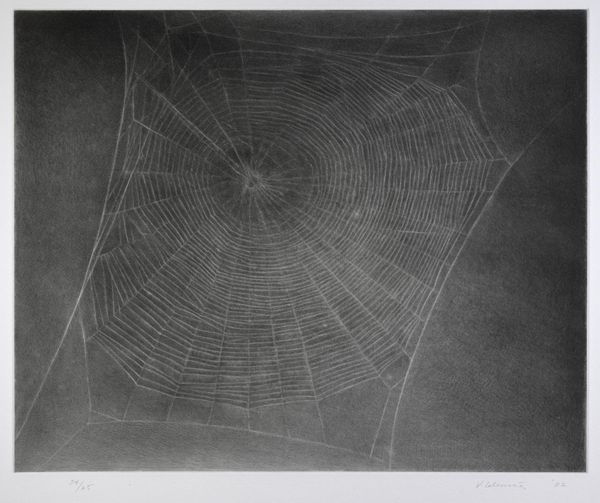 Jan Mankes made this subtle print, *Kruisspin in zijn web*, using etching, a printmaking technique with a long history. Here, we see the delicate, precise labour involved, where the artist protects areas of a metal plate with wax before submersion in acid, meticulously controlling the depth of the etched lines. The ink settles into these grooves, and when pressed onto paper, it creates the image. This work beautifully illustrates the relationship between material and image. Notice how the fineness of the etched lines allows for the detailed depiction of the spiderweb, conveying both its fragility and its intricate structure. The dark background, achieved through careful etching and inking, heightens the contrast and draws our attention to the web's delicate geometry. Mankes, in choosing such a subject and medium, elevates the everyday to the realm of art, and reminds us of the careful processes that shape our visual world. In this piece, we see how craft and fine art converge.