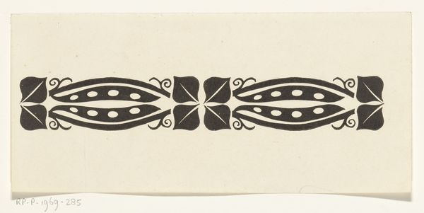 Reinier Willem Petrus de Vries created this design for four ornaments using pencil, pen, and brush in the early twentieth century. The graphic quality of the design draws attention to the materials and techniques used in its creation, which are linked to traditional drawing practices. Each geometric element is defined by fine lines and controlled brushstrokes, rendering the design's contrasting shapes and textures. The linear, abstract motifs, filled with strong, dark ink, bring the design into sharper focus, suggesting precision and careful planning. The drawing's aesthetic suggests a blend of decorative arts and industrial design, which reflects the social and cultural values of the time. The clean lines and geometric forms suggest an interest in functional, mass-producible design aesthetics, as they emerged in the early 20th century. Ultimately, this design serves as a reminder of the interplay between material, process, and social context in understanding the full meaning of an artwork, thus challenging traditional distinctions between fine art and craft.