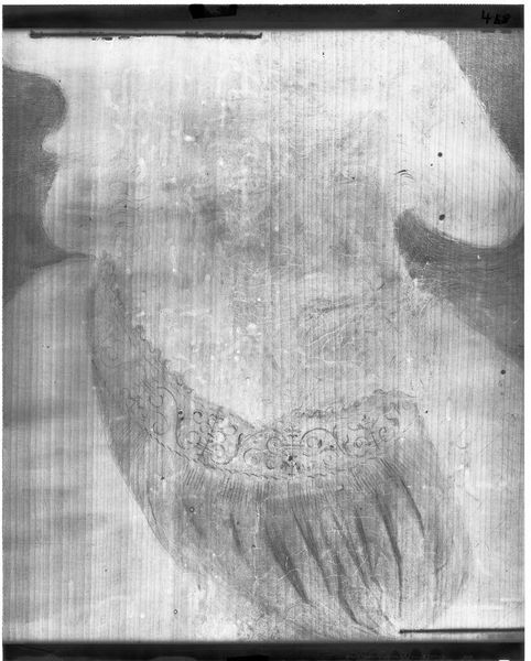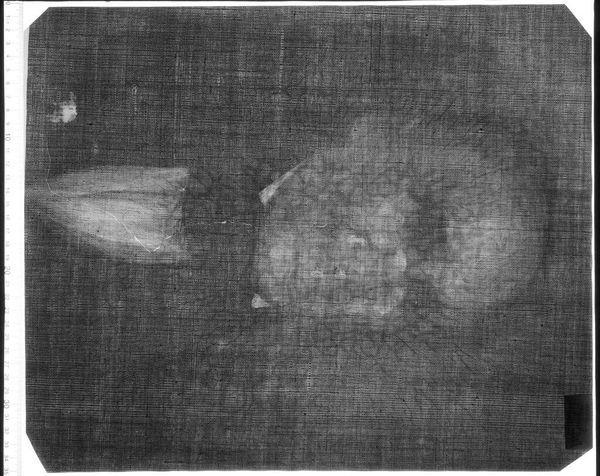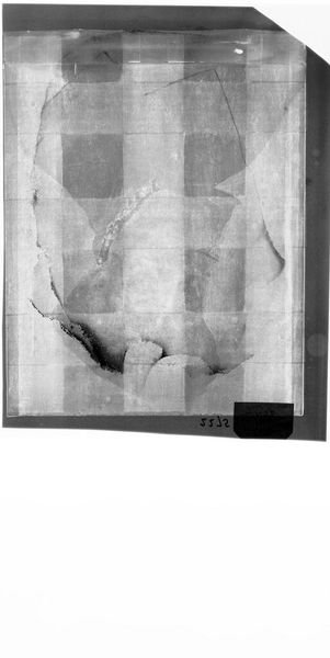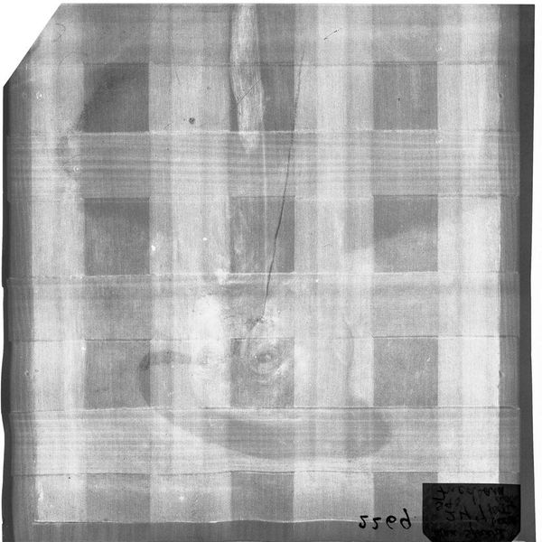 Curator: This is an X-radiograph of "Portrait of a Young Man", attributed to Andrea Previtali, also known as Il Cordeliaghi. It's a film sized at 14 by 10. Editor: Striking! The black and white palette creates a haunting, almost ghostly impression, while the checkerboard pattern superimposed on the portrait disrupts its legibility. Curator: Indeed, the radiographic technique allows us to see beneath the surface, questioning notions of visibility and revealing the hidden layers of artistic creation and perhaps touching on the subject's own obscured identity. Editor: From a formal standpoint, the grid introduces a powerful tension. The artist is using the grid as a new element to change the composition of the old artwork. Curator: It also prompts us to consider the cultural moment of portraiture itself, who had access, and what power dynamics were at play in constructing these images of often elite, white subjects. Editor: Ultimately, this work is a compelling exploration of layers – both literal and metaphorical – in art. Curator: Yes, it shows how art can serve as a powerful lens for understanding complex historical and social power structures.