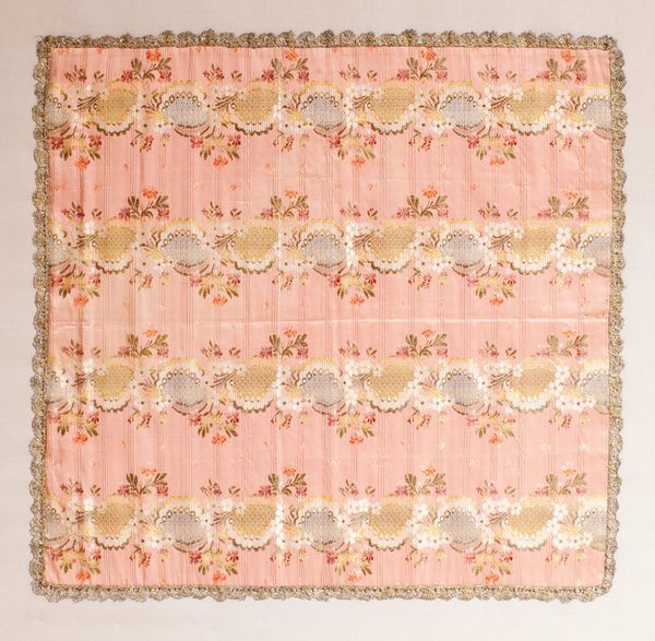 Editor: This is Horia Bernea’s "Praporele florilor," painted in 1976 using acrylic on textile. The immediate effect is one of dizzying, almost kaleidoscopic symmetry. What’s your take? Curator: What I find compelling is the work's simultaneous embrace and subversion of traditional folk patterns. Bernea made this work during a period of intense political repression in Romania. So how do we interpret this "floral cloth" amidst a state-controlled aesthetic? The gesture toward textile, something so intrinsically linked to the domestic sphere and women's work, reads to me as a subtle act of resistance. What do you notice about the composition itself? Editor: Well, it's interesting you mention resistance, because initially, it feels so decorative, almost soothing. But the longer I look, the more that central pattern seems to radiate outwards, almost aggressively. Curator: Exactly! The organic, repetitive motifs typical of Romanian folk art are here charged with an almost unsettling energy. Consider the context: Bernea's art questioned prescribed socialist realism and aimed at exploring more subjective and personal truths, engaging themes such as identity and memory. Do you think the symmetry offers order, or does it amplify a sense of unease, reflecting the sociopolitical landscape of the time? Editor: I’m leaning towards unease now. It’s like something familiar, folk patterns, has been subtly weaponized. I never would have considered it a form of resistance at first glance! Curator: And that’s the power of art, isn't it? To hide complex messages within seemingly simple forms, challenging us to look deeper into both the artwork and its context. Editor: Absolutely. This has completely changed how I view decorative art, and I think I can appreciate "Praporele florilor" a lot more now. Thank you.