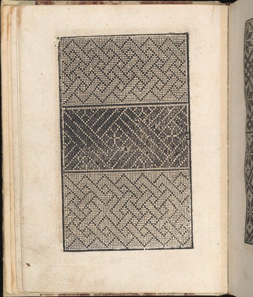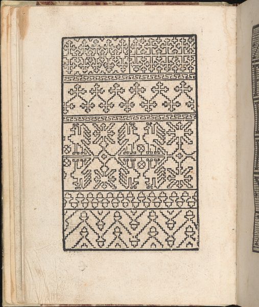 Curator: This is a page from "Ein new getruckt model Büchli," created by Johann Schönsperger the Younger in 1529. This particular page showcases intricate geometric patterns rendered in woodcut, currently residing at the Metropolitan Museum of Art. Editor: Wow, it almost looks like an early form of digital pixel art, but handcrafted. The density of detail is mesmerizing. You can immediately sense its utility and its link to production—I’m thinking textiles, lace. Curator: Precisely. These pattern books were instrumental in the rise of textile and needlework industries. Think of them as instruction manuals and design catalogs rolled into one. They democratized access to complex designs. This access speaks directly to female economic agency during the renaissance. Editor: That’s fascinating. So, by providing these readily available models, were they changing the nature of craftwork itself, shifting it perhaps toward reproduction rather than pure innovation? The rise of these kinds of printed matter have huge impact in labour and manufacturing contexts, but there must be questions of ownership here, too. Curator: It is complex, yes. On the one hand, it standardizes certain aesthetics and potentially homogenizes some local traditions. On the other, it empowers women by providing them the means to generate income. Also, consider the social implication here: designs were now circulating beyond courtly spheres and impacting various classes and gender identities. Editor: Absolutely, seeing this printed page allows me to envision a bustling workshop. The repetitive nature of this medium surely was revolutionary in how labour, gender and social status, and production were all radically interlinked. One might see its implications echoing even today. Curator: I agree. This seemingly simple geometric design unlocks critical insight to broader movements of identity, access, and power within and surrounding this period. Editor: Indeed. From the intimate scale of the page to its mass-produced purpose, it holds immense social material for discussion, even five centuries later.