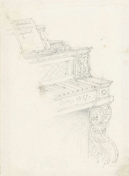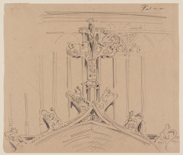Alphonse Mucha created this drawing of a decorative fireplace with a bust using graphite pencil. The sketch presents a harmonious, yet slightly unsettling juxtaposition of architectural and organic forms. We see a classical bust of a female figure, juxtaposed with the fluid lines of Art Nouveau elements. Mucha plays with contrast, setting the rigid lines of the fireplace against the curving forms of plant motifs and flowing drapery. This tension reflects the broader dialogue in art history between classical ideals and the burgeoning aesthetics of modernism. The semiotic interplay here is quite sophisticated. The bust represents classical beauty, while the surrounding ornamentation suggests a departure from tradition. It reflects a society in transition, caught between established values and innovative expressions. Note how the architectural structure frames the scene, yet the details disrupt any sense of static order. This interplay invites the viewer to consider how beauty and functionality are mediated through artistic expression.