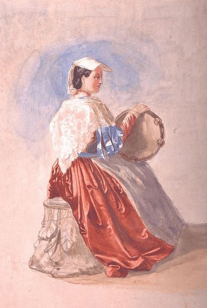 Adolph Tidemand painted this portrait, "A women named Anunziata in Subiaco," using oil on canvas. The material qualities of oil paint - its viscosity, slow drying time, and capacity for blending – allowed Tidemand to capture the soft textures of Anunziata's clothing and skin, and a complex rendering of light and shadow. The smooth surface is a testament to the skilled labor involved in preparing and applying the paint, as well as the artist's mastery of brushwork. The painting also provides a glimpse into the modes of production and consumption of clothing and instruments in 19th-century Italy. Anunziata's traditional dress, likely made from locally sourced materials, speaks to the persistence of regional craft traditions in the face of industrialization. The tambourine she holds also alludes to a rich culture of folk music and dance. Considering the materials, making, and context, the full meaning of this artwork is that of a record of a specific time and place, as well as a celebration of the human figure, which challenges traditional distinctions between fine art and craft.