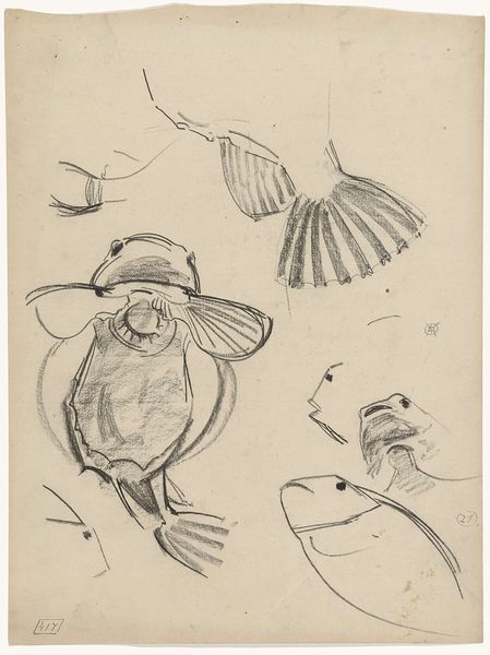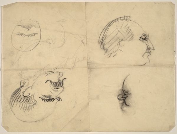 Curator: John Singer Sargent’s “Studies of Pheasant Wings,” captures multiple angles of bird wings with a delicate, almost fleeting quality. Editor: Immediately, I’m struck by the dynamism within this study. The wings’ varied positions create an incredible sense of movement despite the static medium. Curator: Sargent, known for his society portraits, here seems to explore themes of freedom and nature through a different lens, perhaps commenting on the limitations placed upon women during his time. Editor: The subtle gradations of tone, achieved through what appears to be charcoal or graphite, construct form and texture effectively. This monochromatic palette accentuates the wings' structural intricacies. Curator: It's fascinating to consider this work in relation to contemporary discussions around animal rights and environmentalism. Editor: Absolutely, it invites us to reflect on the beauty found in the anatomy of natural forms. Curator: Indeed, a potent reminder of nature's inherent value. Editor: A fitting observation to end on.