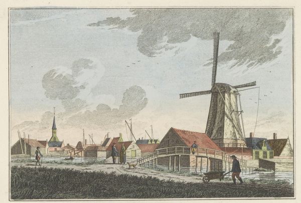 Editor: This is “Overstroming bij de Arkelse dam bij Gorinchem,” or “Flood at the Arkelse Dam near Gorinchem,” an engraving from 1820 by Roelof van der Meulen. It’s currently housed at the Rijksmuseum. I’m immediately struck by how fragile the buildings look against the water – almost as though the built environment is failing against the forces of nature. What’s your take? Curator: I'm drawn to the means of production itself. This isn’t just a depiction of a flood; it’s an engraving, a mass-producible image intended for circulation. Consider the social context: Who was this print *for*, and what role did it play in disseminating information or shaping public perception about such disasters? It’s a romantic depiction to be sure. Editor: That's fascinating. So you are thinking about who got to own and consume the image? Curator: Exactly. Engravings like this weren’t unique objects for the wealthy; they represent an early form of visual news accessible to a broader segment of society. Think about the labor involved: the engraver, the printer, the distributor. Each step contributed to shaping the narrative of this event. It is a bleak narrative, by the way. Editor: And the materials themselves – the paper, the ink, the metal plate used for the engraving – they all have their own histories. So, the material tells a story. Curator: Precisely. The choice of engraving, instead of, say, painting, tells us about intended distribution, market and access. How might the materiality of the engraving medium have shaped or constrained the artist's representation of the flood? Editor: I see what you mean. It definitely reframes my understanding. I guess thinking about the materiality moves the focus from a single artist's view to a wider network of production, and consumption within society. Curator: Indeed. Focusing on process and materials shifts the focus from romantic individualism to broader social and economic factors shaping both the disaster itself, and its visual representation.