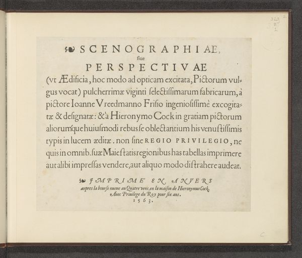 This dedication page was crafted by Hieronymus Cock, a painter and typographer. The Latin text, presented in elegant Roman typeface, is more than mere words; it's a symbolic gesture of reverence and historical awareness. The phrase "In Ruinas Urbis Romae" evokes the image of Rome in ruins, symbolizing not just physical destruction but also the transience of power and the ravages of time. This motif echoes through centuries, reappearing in Renaissance paintings of classical ruins and Piranesi's dramatic etchings of crumbling Roman monuments. The ruin becomes a symbol of both loss and the enduring power of the past. This melancholic vision speaks to the collective memory of lost empires and vanished grandeur. The emotional weight of ruins engages viewers on a subconscious level, reminding us of our own mortality and the cyclical nature of history. The ruin resurfaces time and again, evolving from a symbol of destruction to one of reflection and the enduring human spirit.