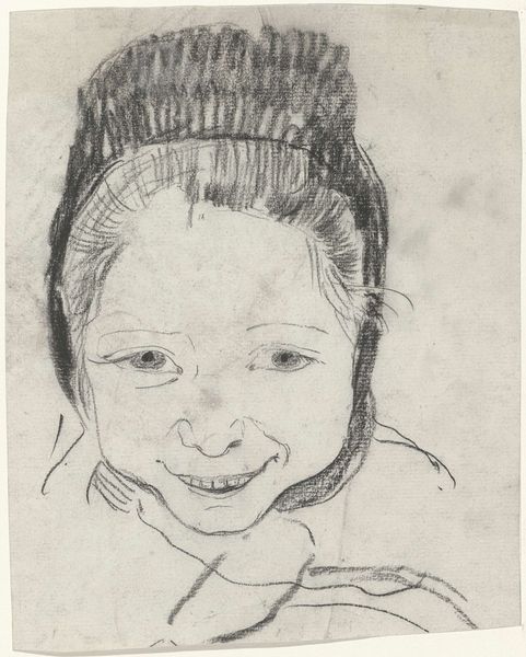Curator: This work by Carel Adolph Lion Cachet, entitled "Kinderen in de schoolbank," offers us a glimpse into a classroom scene rendered in pencil sometime between 1874 and 1945. What are your initial thoughts on it? Editor: There's a stark realism here, almost unsettling. The children's faces have an intensity, a certain weight that feels heavier than what you might expect from a classroom scene. It feels socially charged, as though the artist captures something deeper about their circumstances. Curator: Yes, the faces do possess a certain gravitas, don't they? The use of pencil allows for capturing fleeting expressions, revealing inner lives. To me, it echoes similar approaches we see in portraiture intended to evoke emotional connection and understanding of an individual’s persona, though it is somewhat unconventional. The light is simple. Editor: Exactly. This isn't some idyllic rendering of childhood innocence. I think that the artist intentionally wants to portray the school's complex social dynamics of power and knowledge. How do we interpret this representation in light of colonial legacies and educational reform? Curator: The schoolroom in general has traditionally been charged symbolically, associated with notions of control, order, indoctrination even. In this context, there is a kind of uniform structure with students facing forward, focused on their studies and play, although there appears a variety of individual styles represented amongst students which is unexpected from that time. Do you believe there's commentary intended on institutional rigidity or some degree of the opposite? Editor: I'd argue that Cachet uses the medium to draw attention to these constraints, highlighting how education can shape and even confine young minds. Look at how carefully their features are outlined, yet within those bounds, they exhibit such individuality in attitude and expression. In that light, even playing in a certain controlled structure. The medium highlights how constraints themselves do not always create or support conformity. Curator: That's a poignant point, emphasizing how individuality persists even within imposed structure and convention. Ultimately, "Kinderen in de schoolbank" shows the dynamism present at that time despite limited tools, the universal theme of navigating rules, expectations, self-identity and social relationships. Thank you. Editor: It provides room for reflection on social conditions within learning environments which echoes in today's political landscape and struggles. Thank you.