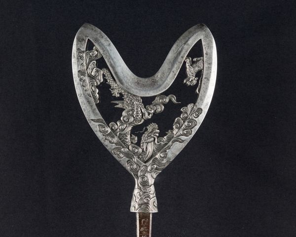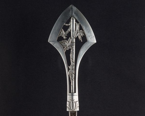 Curator: Here we have a piece identified as “Pin,” dating from the 20th century. It's Navajo, crafted from silver, and part of the decorative arts collection here at the Minneapolis Institute of Art. What catches your eye first? Editor: Honestly? It looks like a stylized ice cream cone! It's got this radiant, almost Art Deco feel, and those tiny silver chains are wonderfully playful. Curator: Well, the geometric motifs are indeed striking. When viewed from an activist perspective, decorative objects such as this pin embody complex layers of meaning, reflecting both cultural preservation and economic necessity within Navajo communities. Editor: Right. It’s a powerful act, reclaiming and restyling traditional designs while also participating in broader economic structures. Curator: Precisely. Consider how this pin, potentially worn on clothing or a blanket, asserts a sense of identity and resilience, offering a counter-narrative to dominant cultural portrayals. Editor: And there’s a certain irony, isn’t there? That a piece designed, in part, for trade becomes this symbol of enduring cultural strength. You know, the light catches those etched lines and small dangles just so, almost giving the impression of movement or dance. Curator: That shimmering effect emphasizes its vitality. Each engraved line, each precisely placed element, becomes a statement—a reminder of stories told, skills passed down, and a continued presence on the land. Editor: It almost makes me want to take up metalworking myself... although I’m pretty sure my attempts would result in something far less graceful! Curator: Perhaps the most potent aspect of this “Pin” is its subtle declaration that Indigenous artistry is not a relic of the past, but a continuously evolving expression. Editor: Agreed. And appreciating objects like this means honoring not just the aesthetic achievement, but the people and history interwoven within it. Thanks for expanding my understanding. Curator: The pleasure was all mine. It is my hope that, from a historical and material point of view, we're also reflecting on the people and history interwoven within it.