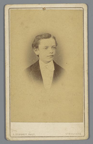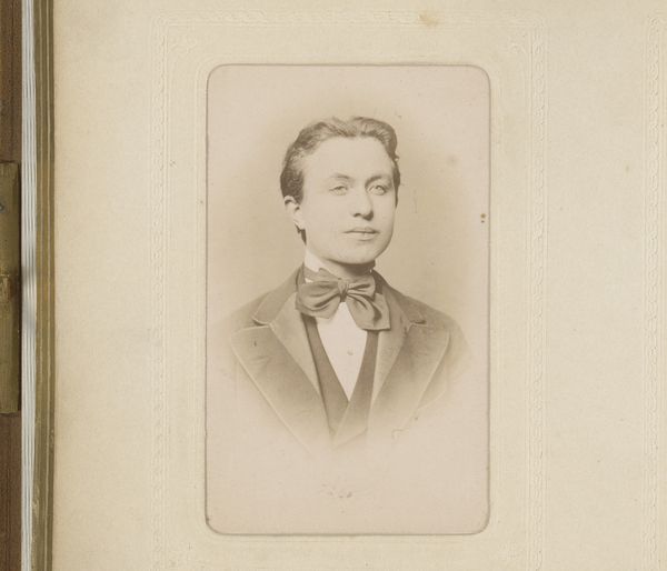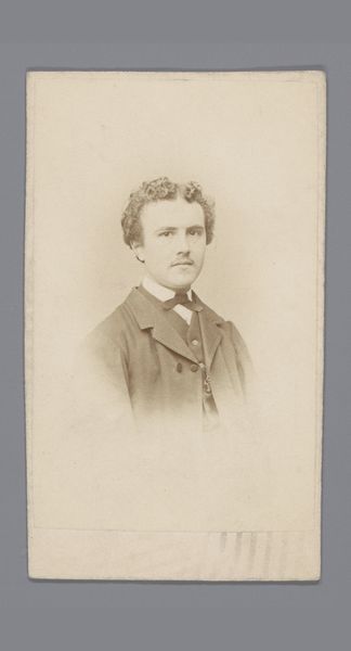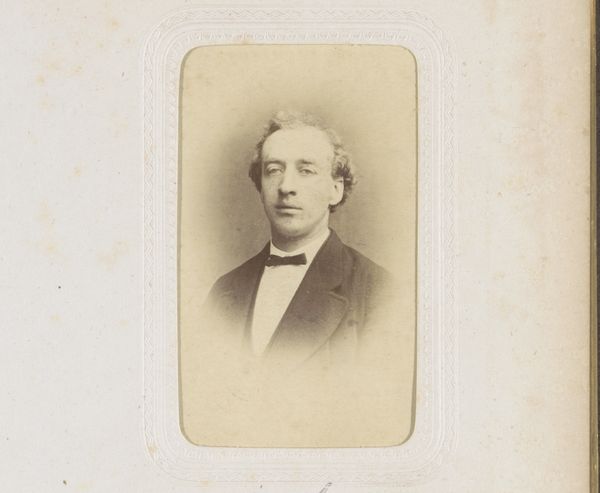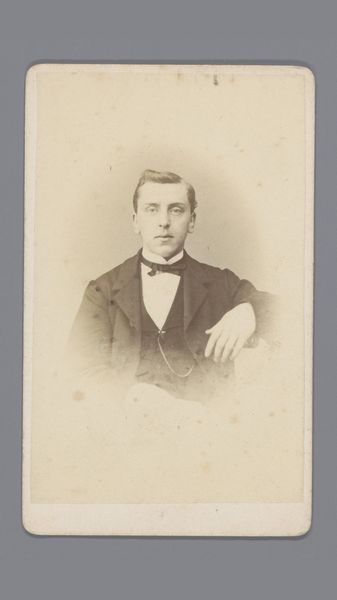 Editor: We’re looking at "Portret van een onbekende man," or "Portrait of an Unknown Man," taken around 1897, crafted from photography. There's something deeply haunting about this portrait. He feels so far away, almost a ghost trapped in sepia tones. What stands out to you in this photograph? Curator: Oh, the beauty of lost identities! The unknown can be a potent muse, can't it? For me, the enduring appeal lies in that very ambiguity. Imagine the stories he *could* tell. Think about late 19th century studio portraiture - a relatively new medium still finding its footing between artistic expression and the simple need for documentation. Do you sense that tension here, the pull between art and utility? Editor: I see what you mean! He looks very formally dressed; almost staged. Did most people have a single portrait taken of them? What might that moment have meant? Curator: Absolutely, I think you’re onto something. Yes, precisely! The sitter's formality speaks volumes. He’s donned his best suit, presenting himself for posterity. To sit for a photograph in 1897 wasn't like snapping a selfie. It was an event, an investment! Perhaps his first and only opportunity to be immortalized in this newfangled way. But notice how the artist, Jacobus Cornelis Kuijper, coaxes out a trace of vulnerability behind the buttoned-up facade? That is what makes it a good portrait! Editor: I hadn't thought about it that way – an event. It makes him seem so much more human and connected to his time. I guess, looking at him, you are capturing time, a moment. Curator: Precisely! Each time we view it, we enter that preserved slice of time, reimagining his life, wondering who he was and what legacy he left behind. It's a form of immortality, wouldn’t you agree? It allows the person looking at it to connect.
