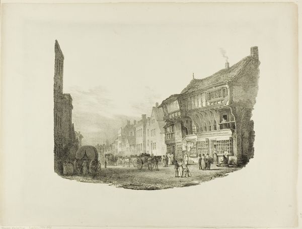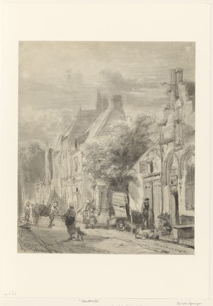 Cornelis Springer made this city view with horse cart in 1855 using etching and paper. The artist would have applied a waxy ground to a metal plate, then scratched an image into it with a needle. When acid was applied, it bit into the exposed metal, leaving behind an intricate network of incised lines. The choice of etching as a medium carries its own social weight. Unlike painting, which was often the preserve of the wealthy, etching lent itself to reproduction, and therefore wider distribution. The city scene, bustling with everyday life, is meticulously rendered, and the lines of the etching capture the grit and texture of the urban environment. Look at the figures, rendered in fine detail, engaged in various activities, and consider the labor implicit in the scene – the loading of carts, the sweeping of streets, and the general commerce of the city. In appreciating this etching, we are reminded of the complex interplay between art, labor, and the everyday.