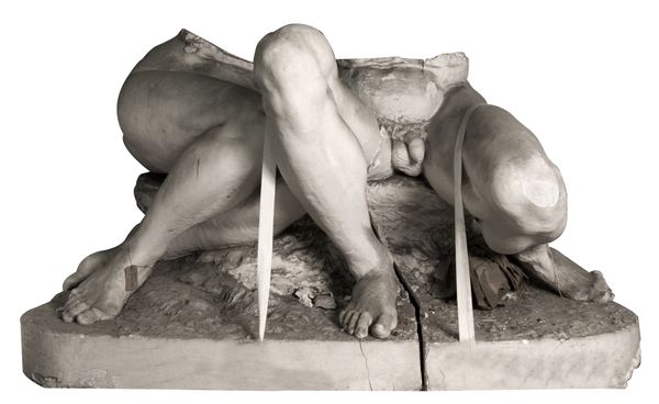 Carl Aarsleff made this sculpture of a young Florentine man out of marble. The smooth, cool stone gives a sense of classical beauty and timelessness. Marble is heavy, hard to carve, and requires a lot of labor. Aarsleff would have started with a rough block, gradually chipping away at the stone to reveal the figure within. The process demanded precision and control, using tools and techniques that have been refined over centuries. The sculpture references the skilled traditions of classical sculpture, while representing an idealized, nude figure, with an emphasis on balance and harmony. By choosing marble and engaging with classical techniques, Aarsleff sought to connect with the artistic achievements of the past. Yet the work also speaks to the social context of its own time, when there was a growing interest in realism, everyday life, and the human body. Considering the materials, making, and historical context allows us to fully appreciate the artistry and cultural significance of this work.