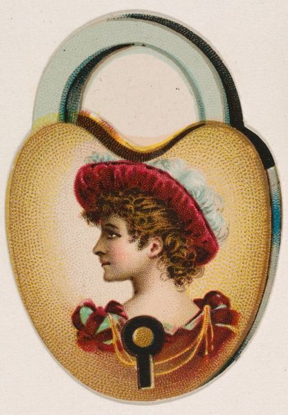 Editor: Here we have *Quiver of Arrows* by Kinney Brothers Tobacco Company, printed in 1889. It seems to be a chromolithograph trade card. I'm immediately struck by the idealization of femininity represented in this piece, with its delicate pink accents and emphasis on ornamentation. What do you make of it? Curator: It's interesting to consider this piece through the lens of advertising. What narratives is it selling, and who is its target audience? Trade cards like these weren’t just innocent novelties; they were active agents in shaping consumer culture and societal norms. Editor: So, it’s not *just* a pretty picture… Curator: Exactly. Think about the image itself: a quiver, traditionally a symbol of weaponry, is here softened and feminized, adorned with the portrait of a woman. What does that say about the intended consumer's view of women, or perhaps even their aspirations? The ornamental framing of her portrait really underscores the idea of women as objects of beauty. Editor: That’s a stark contrast! So, this image is potentially promoting an image of women as decorative, linking them to both domesticity and desire in ways that might reinforce social power structures? Curator: Precisely. We can also think about how these cards circulated. They would have been collected, traded, and displayed, becoming part of a wider visual culture that normalized certain representations and hierarchies. Considering this is an advertisement by a tobacco company, one can ponder whether the adornments on the quiver serve to obfuscate or euphemize themes around domination or fetishism. Editor: That makes me think about the legacy of these kinds of images. You can still see echoes of this way of portraying women today, which is slightly disturbing. Curator: Yes, the echoes resonate even now, urging us to be more thoughtful about images that reinforce cultural norms. Editor: It’s unsettling to consider how much intention and power were behind what I initially thought was just a decorative card! Curator: Indeed, by critically examining the intersectional politics embedded in historical images like this, we gain crucial insights into the mechanisms of power and representation that continue to shape our world.