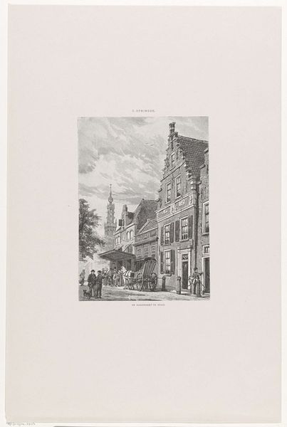 Editor: This is Johannes Walter's "Amsterdamsch stadsgezicht," placing us in Amsterdam somewhere between 1849 and 1895. It's an etching, a print really, and quite charming. The grey scale gives it a hazy, almost dreamlike quality, and I am intrigued by how different techniques of line drawing created texture and atmosphere. What do you see in this piece that might jump out to someone who's less familiar? Curator: It whispers stories, doesn’t it? For me, it's like stumbling upon a forgotten memory. The ink dances with light, especially on the water; it gives this stillness. Did you notice the perspective? The artist cleverly guides your gaze from the bustling street corner on the right, across the bridge and along the canal towards that distant dome on the left horizon, hinting at infinity. I'm also curious, does it make you feel anything? Editor: It does, a sense of tranquility mostly, almost nostalgia, though I have never been to Amsterdam. Why nostalgia, do you think? Curator: I suppose it has to do with those Dutch Golden Age influences; the period had a love for cityscapes with dramatic contrasts between light and shadow. I believe Walter really captured the city’s heart, with this balance of human activity and the surrounding serene bodies of water, something very recognizable about Amsterdam's vibe! The very air of the Dutch masters seems to hover around the graphite. Editor: That’s interesting – this work speaks across generations, capturing the enduring spirit of a place, with the ink kind of blurring time. Curator: Absolutely. It’s a lovely piece, revealing fresh details each time you pause to look at it. It leaves you contemplating the passage of time, but feeling hopeful about the continuity of culture and place. Editor: Well, I'll certainly look at cityscapes in a different way from now on. Curator: I trust that you’ll feel like visiting Amsterdam!