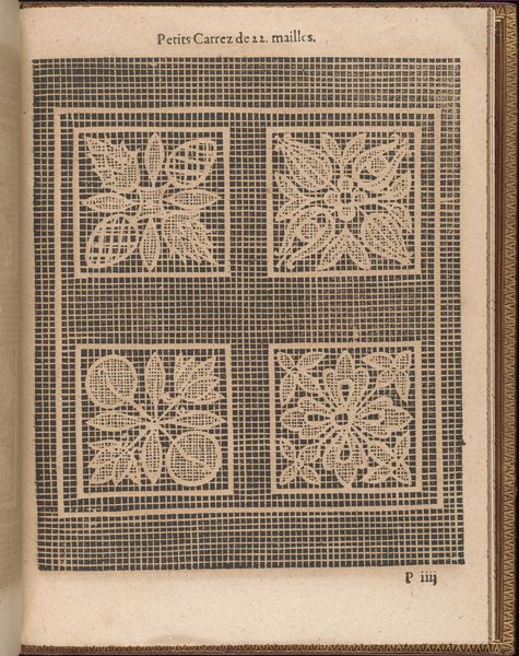 Matthias Mignerak created this page from "La Pratique de l'Aiguille," sometime in the 17th century using woodcut and letterpress. Printed manuals like this one played a crucial role in shaping artistic and cultural practices, particularly in the realm of domestic crafts. This image is more than just a pattern for needlework; it's a window into the social fabric of its time. In 17th-century Europe, lace-making was not merely a pastime but a significant economic activity, often associated with women's labor and domestic production. Manuals like this one democratized access to design and technique, allowing individuals to participate in the creation of valuable goods. To understand the context of this image, we can look at guild records, economic histories, and studies of material culture. These resources help us to explore the relationship between art, labor, and social status. By examining this artwork through a socio-historical lens, we recognize that art's meaning is always contingent on its social and institutional context.