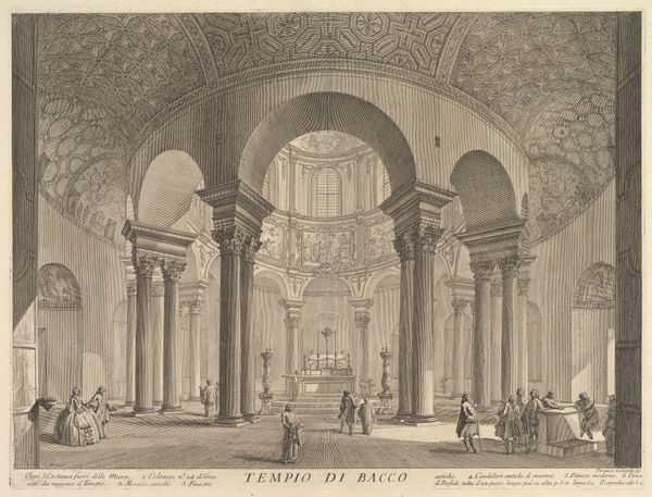 Giovanni Battista Piranesi created this etching of the Basilica of St. Sebastian in Rome. He was a master printmaker, and the etching process was central to his artistry. Etching involves coating a metal plate with wax, scratching a design into the wax, and then immersing the plate in acid. The acid bites into the exposed metal, creating lines that hold ink. Piranesi likely used copper, prized for its ability to hold fine detail. The texture of the print is determined by the depth and density of the etched lines, a physical record of the artist's hand and the corrosive action of the acid. This technique allowed for a level of detail that was highly valued in Piranesi's time, but required significant labor and skill. The resulting prints could be reproduced and sold widely, participating in a growing market for images that fueled both artistic expression and capitalist enterprise. It challenges any easy separation of "fine art" from craft, labor, and social context.