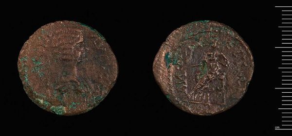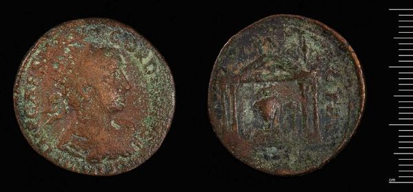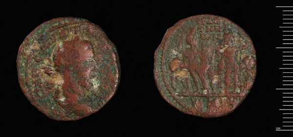 Curator: This coin, issued under Severus Alexander from Ninika, whispers of a time long past. The bronze feels heavy with history, doesn’t it? Editor: It does! A ghostly presence, like something dug up from a dream. It makes me wonder, who touched this coin? What stories could it tell? Curator: As a piece of political propaganda, this coin served to disseminate ideas of imperial power and local identity. Minted far from Rome, it connected the distant emperor to the everyday lives of the people in Ninika. Editor: Power is such a strange, abstract thing. Here it is, rendered in metal, tiny and worn. One side shows a ruler's profile, the other some kind of horse-drawn chariot. It’s almost comical, this attempt to immortalize something so fleeting. Curator: Yet that's precisely its magic, isn't it? These images, though small, circulated widely. They reinforced ideas about leadership, civic life, and the relationship between the individual and the state. Editor: Absolutely. And what remains are these fragments—objects with the power to ignite our imaginations, reminding us that even the grandest empires eventually fade. It's both melancholic and strangely liberating.