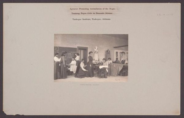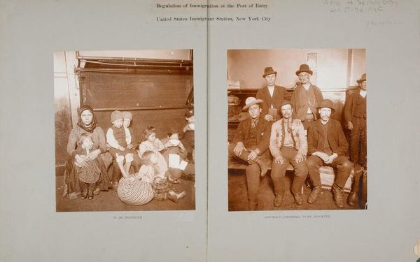 Editor: This photograph, "Excluded Women" by J.H. Adams, depicts a group of women at a New York immigration station. The women are holding their belongings. What strikes me is the heavy materiality, all the fabric and bundles they carry. How does the context of immigration shape your understanding of this image? Curator: The focus on materiality is key. Notice the rough fabrics, the practical bundles. These aren't luxury goods; they represent a life's worth of possessions and labor, all carried by these women. What does it mean to be excluded, processed as a material problem at the port of entry? Editor: It really makes you think about the human cost of immigration policies. I'm starting to see how the materials tell their own story of hardship. Curator: Exactly. The image highlights the material conditions and the means of production that define these women's existence and how those lives were impacted by immigration policies. Editor: This has completely changed how I see the photo. Thanks!