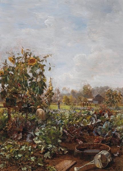 Théophile Alexandre Steinlen's ‘Clairmarais’ is a landscape painting realized with oils, that captivates with its tranquil yet structurally complex composition. The painting is dominated by earthy hues; browns, greens, and muted oranges, creating a scene that feels both natural and intimate. Steinlen's brushwork is loose and expressive, adding a sense of movement and vitality to the still landscape. The way the light catches on the tips of the brushstrokes gives a semiotic texture that suggests a subtle dynamism inherent in nature. The composition is carefully balanced, guiding the viewer's eye from the foreground of the reedy banks towards the solid form of the building in the mid-ground. This structural arrangement not only provides depth, but also a means of contrast, highlighting the relationship between nature and architecture. The trees, framing the edges, function almost as theatrical curtains, inviting us to contemplate the scene. Steinlen's work destabilizes any fixed meaning, suggesting instead a space for ongoing interpretation and re-interpretation.