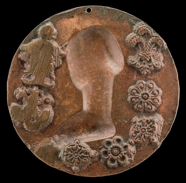 Antonio Abondio created this metal medal of an eagle and radiant wreath, sometime between his birth in 1538 and death in 1591. The medal presents a symmetrical composition, dominated by the figure of an eagle with outstretched wings. This central image is framed by a radiant wreath above and swirling clouds below, creating a visual hierarchy that draws the eye to the powerful bird. Abondio's use of relief is particularly striking. The textures and gradations enhance the symbolic nature of the eagle and wreath. Consider how Abondio integrates classical motifs with Renaissance aesthetics. The eagle, a symbol of power and empire since Roman times, is here set against a wreath, often associated with victory and honor. The phrase around the edge, hints at a celebration of public welfare or salvation, suggesting the medal may have been commissioned to commemorate a significant political or military achievement. In essence, the medal functions as more than just a decorative object; it operates as a complex sign, using established symbols to convey messages about power, authority, and public good.