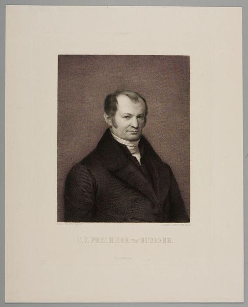 Curator: I find this portrait to be quite compelling, almost haunting. The artist, Isaac Cornelis Elink Sterk, captures a profound sense of dignity. Editor: My immediate impression is its simplicity— the clear linework. It feels very direct in its depiction of…I suppose, authority. What are we looking at here? Curator: This is a print, an engraving dating from sometime between 1818 and 1871, titled "Portret van Alexander von Humboldt." It now resides here at the Rijksmuseum. What’s interesting to me is how the image speaks to Humboldt's lasting legacy through established symbolic conventions. Editor: An engraving, that's what I suspected. So the image exists because it was reproducible; its impact relies on distribution. What choices, related to technique and material, were important for Sterk to communicate what he wanted about Humboldt, who by the way, was a rather influential scientist. Curator: Notice how Humboldt's gaze is unwavering, direct, and framed by soft, aged paper. The portrait speaks of knowledge and authority. Even the detail of the Order of Merit subtly refers to Humboldt’s lasting influence and symbolic power within intellectual circles. It's cultural memory etched in lines. Editor: And reproduced, again and again! How does the scale affect its meaning, its consumption? It feels like an accessible format intended for personal rather than public consumption; almost like an old postcard. The decision to reproduce in monochrome further simplifies and strengthens Humboldt's imposing image. Curator: Perhaps the choice in rendering style evokes not just realism, but a sense of groundedness that reinforces the ideas associated with Humboldt—exploration, and observation, empiricism made image. Editor: Yes, I think we are witnessing not only the iconography, but the material dissemination of it as well! Curator: Indeed. It’s intriguing to consider how a simple engraving captures and transmits such potent symbolic and intellectual weight. Editor: The convergence of subject, craft and proliferation is what strikes me the most. Food for thought on the mechanics of fame.