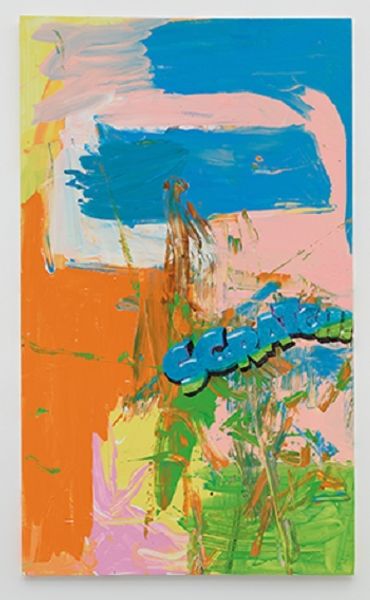 Curator: Jack Bush's "Red M," held in the Tate Collections, strikes me as immediately bold and energetic. Editor: Indeed, it's a striking image! The large red zigzag dominates the composition. We should consider Bush's position within the art market of his time and how these abstract forms gained value. Curator: I see that red as a defiant statement. What social and political narratives might be embedded in such a large, unapologetic form? Does it challenge notions of propriety within the established Canadian art scene? Editor: Perhaps. Abstract Expressionism was gaining traction, and institutions like the Tate played a key role in legitimizing it. This piece may be less about overt defiance, and more about participating in that evolving discourse. Curator: I still see a raw, almost visceral quality to the brushstrokes. It feels like a rejection of traditional artistic constraints. Editor: The public's reception of such abstraction would have been mixed, conditioned as they were by more conventional art forms. Its entry into a major collection like the Tate signifies a shift in taste. Curator: The play of colors certainly invites discussion about the politics of abstract form. Editor: Precisely. It's a fascinating example of how abstract art became institutionalized.