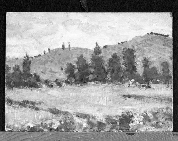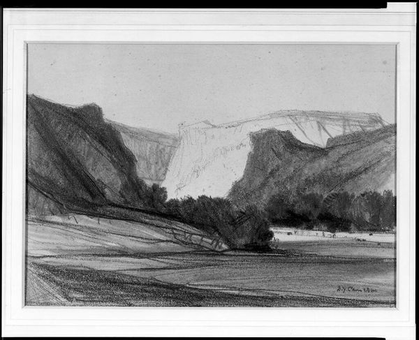 Editor: This is Morita Tsunetomo's "Mount Bandai", from the series "Japanese Scenery Prints." It's a lovely, quiet landscape. The composition feels very balanced. What draws your eye in this work? Curator: Observe how Tsunetomo uses horizontal bands to structure the composition. The tonal gradations create depth, yet the textures remain consistent throughout. Note how the reflection on the lake mirrors the upper landscape, thus creating symmetry. Editor: I see what you mean about the symmetry. It's almost like a Rorschach test. Did he do that intentionally? Curator: The artist's intention remains elusive. But the structural unity is undeniable. Consider the interplay between line and mass, and how they contribute to the overall balance. Editor: That’s a different perspective than I considered. I’ll definitely look at landscapes with a sharper eye for structure now. Curator: Indeed. By analyzing the formal elements, we gain a deeper appreciation for the artist's craft.