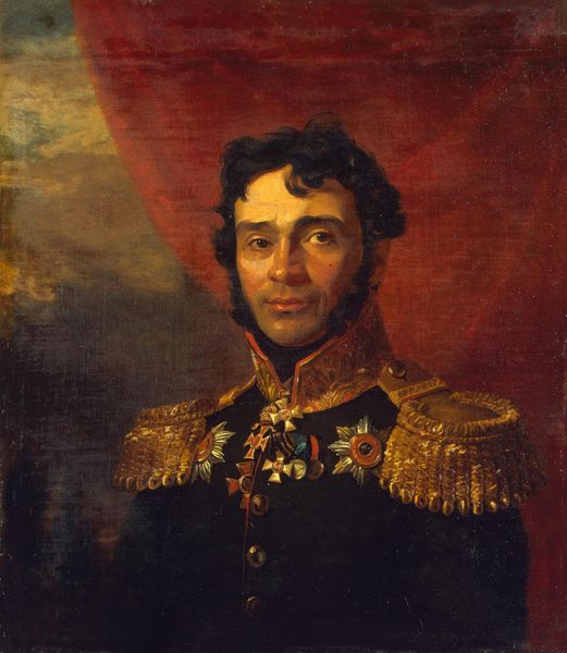 George Dawe painted this portrait of Dmitry Andreevich Levin, a Russian General, in 1823. Note the opulent gold embellishments on Levin’s uniform—these are not mere decorations but potent symbols. Gold, across cultures, signifies power, divinity, and triumph, a tradition stretching back to ancient civilizations where golden attire and objects were reserved for royalty and gods. Consider the laurel leaves embroidered on his collar. Laurel wreaths, since antiquity, have crowned victors and symbolized eternal glory. We see echoes of this in Roman emperors adorned with laurel, a motif resurrected during the Renaissance to glorify leaders and heroes, thus continuing through the ages. The very act of portraying a military figure in profile, a tradition since ancient coins and cameos, evokes a sense of stoicism, a deliberate presentation of unwavering resolve and fortitude. This visual language creates a powerful emotional experience, stirring feelings of respect and admiration, connecting us to the deep-seated human reverence for strength and leadership.