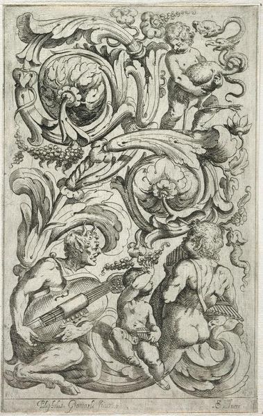 Editor: Here we have Jean Lepautre's "Grote cartouche," a drawing created before 1666. It’s incredibly ornate – packed with figures, animals, and fantastical elements. How do you even begin to unpack a piece like this? Curator: This is a prime example of Baroque visual language, wouldn't you agree? Consider the context: Lepautre was working in a time when art was often used to communicate power, status and, yes, specific ideological viewpoints. Think about what the symbols chosen here might communicate, not just about power, but about its justification. What stories are being told? Editor: I notice a lot of classical figures and mythological creatures, so stories of gods and goddesses maybe? But it’s not very clear what narratives might be promoted. Curator: Exactly! But look closely. Who is included, and who is omitted? These visual choices are never neutral. The abundance, the flowing forms, even the way figures dominate or serve each other--what power structures do you see reflected in that, and whose voices might be missing from this grand tableau? Do you think there may be some deliberate political commentary through classical allegory here? Editor: That’s a great point. It makes me wonder if Lepautre’s commentary on social issues was maybe seen as subtly subversive within his own cultural moment? It looks so busy, you would probably have to pay attention to pick up the possible implications. Curator: Precisely! Consider the role of the artist during this period. What freedoms did they have, and what constraints were placed upon them? Now consider what an activist might find in this imagery as points for further debate. Editor: Wow, I see this artwork completely differently now. There are clearly stories of power and marginalization being depicted here. Curator: Precisely! Analyzing those unspoken narratives reveals the true significance of these ornate displays of power. It forces us to reckon with those ongoing systems of authority today.