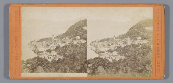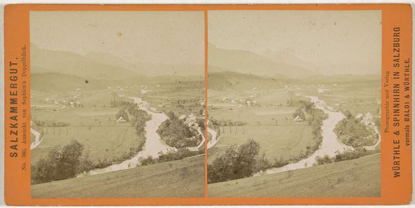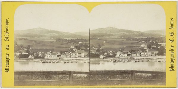 This stereoscopic photograph, "Gezicht op Kirchberg in Tirol en de Rottenstein," by Oscar Krämer presents a compelling study in composition and tonal range. Executed in the 19th century, the subdued sepia tones create a sense of depth, emphasizing the receding layers of the landscape. The composition, divided into foreground, middle ground, and background, draws the eye from the textured fields up to the village nestled beneath the mountains. Krämer uses the stereoscopic format to enhance this depth, giving the scene a palpable sense of space. The symmetry inherent in the stereoscopic image offers a fascinating play with perspective. It invites us to consider how such repetition both reinforces and potentially destabilizes our perception of space and form. The photograph's structure invites ongoing interpretation, where the interplay of form and perspective shapes our understanding.