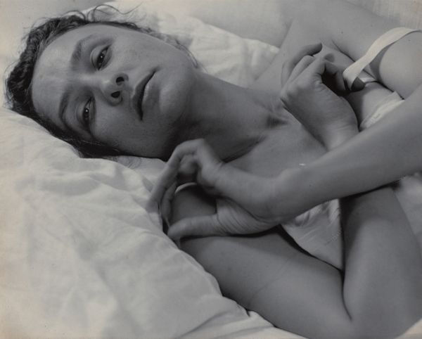 Alfred Stieglitz captured this photograph of Georgia O’Keeffe as part of a larger series that began around 1917. Stieglitz’s photographs of O’Keeffe are more than mere portraits; they are visual constructions of her identity, reflecting the complex dynamics of their personal and professional relationship. Through his lens, O’Keeffe was presented in a way that catered to early 20th-century notions of female beauty and artistic muse. The images also reveal tensions around gender and artistic representation. While the photographs brought O'Keeffe into the public eye, they also risked defining her solely through Stieglitz’s gaze. In this photograph, O'Keeffe's repose might evoke vulnerability, yet her steady gaze suggests self-awareness. Considering that O’Keeffe was also a celebrated artist, the photograph asks us to reflect on how women artists have historically been seen, and how they negotiate the line between being the subject and the creator.