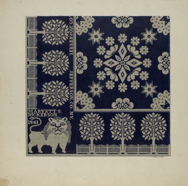 The Tyler Coverlet was created by Arthur G. Merkley, who lived from 1855 to 1995. It showcases the artistry of textile production and its connection to social narratives. The coverlet’s design is realized through weaving, with contrasting dark and light threads forming the pattern. Notice the grid-like structure inherent to weaving, which gives the images a pixelated effect. This is a direct result of the material's influence, as the interlacing threads dictate the form. The coverlet's imagery—trees, figures, and animals—suggests a pastoral scene, perhaps reflecting rural life or folklore. Each motif meticulously woven, this speaks to the labor-intensive process involved in creating such textiles. Coverlets like this one were often made in the home, representing a blend of necessity and artistic expression. By understanding the materials and processes behind this coverlet, we appreciate its cultural value and the skilled work that went into its creation.