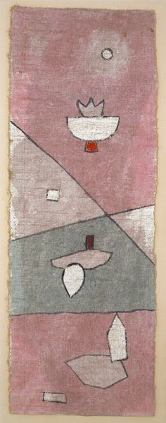 Paul Klee’s *Hat, Lady and Little Table* is made from paint applied to burlap, a coarse, woven fabric often used for sacks and other utilitarian purposes. Klee’s choice of burlap as a ground is far from incidental. Its rough texture and humble origins contrast sharply with the refined techniques and materials traditionally associated with fine art. The weave of the burlap is clearly visible beneath the layers of paint, adding a tactile quality to the composition. The texture becomes an active element in the artwork, influencing the forms and colors applied to its surface. Klee's approach reflects a desire to engage with the everyday, and to challenge conventional notions of what constitutes high art. He elevates a common material to the realm of artistic expression. By doing so, Klee blurs the boundaries between craft and fine art, inviting us to reconsider the value and potential of materials that are often overlooked.