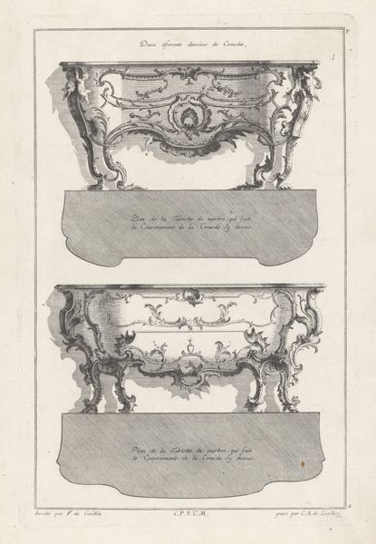 Charles Claesen created these five ornament designs for Ry Castle using printmaking, likely lithography. This process involves drawing on a flat stone or metal plate with a greasy substance, applying ink, and then pressing it onto paper to create multiple impressions. What's fascinating here is the relationship between this reproductive technique and the architectural elements depicted. The designs show intricate details meant to be carved in stone or wood. Lithography allows these complex forms to be widely distributed and potentially mass-produced, influencing architectural styles far beyond the castle itself. Consider the labor involved: from the skilled artisans carving the original ornaments to the printmakers replicating them. This print bridges the gap between unique craftsmanship and industrial production, embodying the changing dynamics of art, labor, and consumption. It challenges us to see how techniques of reproduction play a crucial role in shaping our built environment.