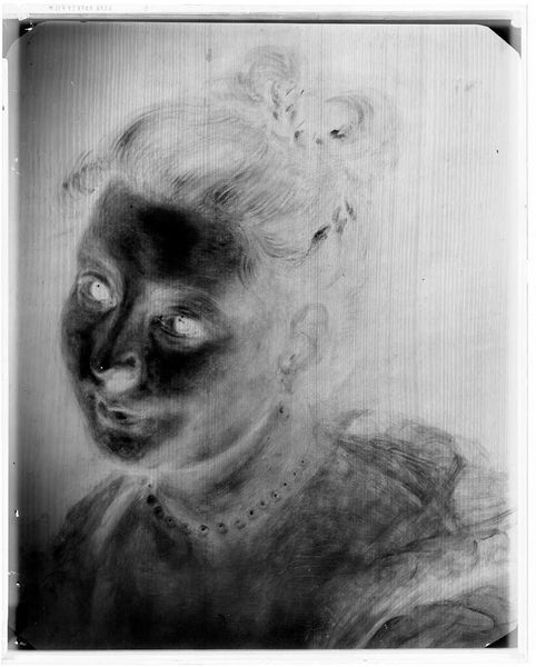 Curator: Here we have an X-radiograph of Alesso Baldovinetti's "Portrait of a Lady," held at the Harvard Art Museums. The date of the x-radiograph is unknown. Editor: It’s eerie, almost ghostly! You can see through the surface, exposing the skeletal structure underneath. I am struck by the contrast in the light and shadows. Curator: The materials used in the original portrait would interact with the X-rays, revealing details about Baldovinetti’s technique. Think about the labour involved in creating the original work and then later, the labor behind creating this x-radiograph. Editor: Absolutely. And in viewing this image, I think about the history of portraiture and the societal expectations placed on women, especially in how their image is constructed and perceived. It challenges us to look beyond the surface. Curator: Indeed. It's a fascinating way to study the materials and methods of past art production. Editor: It gives us a chance to see how the artwork can transcend time and reveal the intersectionality between its origin and our modern understanding.