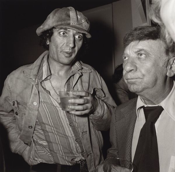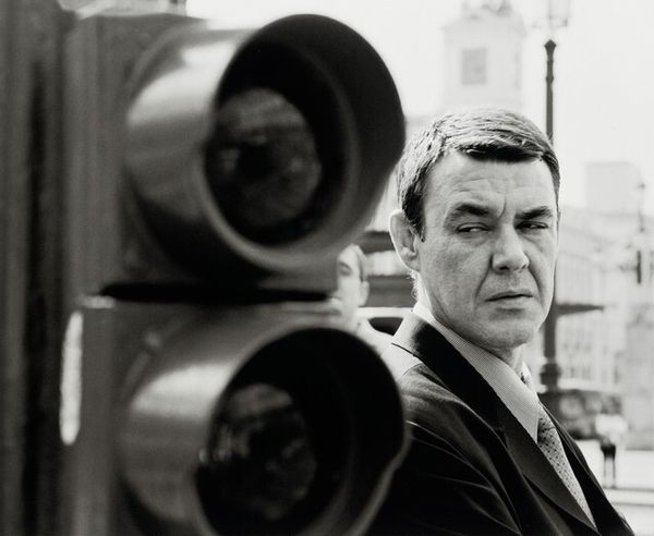 Curator: Here we have Leo Rubinfien’s photograph, "Moscow, 2003, in Okhotny Ryad." The image, a monochrome piece, was created sometime between 2003 and 2014, offering us a glimpse into post-Soviet street life. Editor: It’s strikingly raw, isn’t it? All those faces pressed together, caught in a moment… it feels like overhearing a heated conversation on a cold day. Very evocative, the kind of image that sneaks into your dreams later. Curator: I see the composition as reflective of a specific moment in Russia's socio-political transition. Rubinfien captures a tension, an unease. Notice how the subjects avoid direct eye contact with the camera, a visual marker, perhaps, of distrust or weariness? Editor: Maybe they just weren't in the mood to smile for the camera! But yes, I get the tension too. That central figure with the cigarette looks burdened, like he's carrying the weight of the world… or at least, the weight of Moscow traffic. The photograph is really well made, it sucks you right in! Curator: His thoughtful posture, combined with the seemingly guarded expressions of the others, suggests a deeper narrative. Consider, also, how black and white photography here reinforces the sense of stark realism. There’s a kind of unvarnished truth presented here. How does it hit you? Editor: Truth is a big word, but there is an absence of varnish! It feels unposed, stolen almost. And it’s compelling! Makes you wonder about the individual stories there. About what happened five minutes before, or what was going to happen five minutes after. What were they all looking at? What had happened to them? Curator: I agree completely. Rubinfien encourages us to reflect upon broader societal anxieties about visibility and surveillance within public spaces. Street photography itself can be invasive. This work urges to ask whose stories get told, and how. Editor: Well, it certainly told me a story! This reminds me of some black-and-white photos my grandfather took on his travels and his quirky notes on the backs. Seeing work like Rubinfien's makes me want to just go make a movie now. This one stays with you, doesn't it? Curator: Absolutely. The photo invites introspection about the act of looking itself. Editor: Art, man. Just when you think you've got it all figured out... something like this appears!