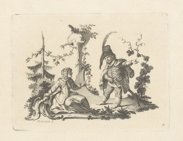 Charles Grignion created this etching, "Tailpiece to the Catalogue of Pictures Exhibited in Spring Garden" in 1761. The print offers a satirical commentary on the artistic and social landscape of 18th-century England. Note the figure of the monkey, a symbol often used to mock human vanity and foolishness. Here, the monkey carefully tends to two potted plants marked with the word "OBIT," suggesting the death of artistic traditions or perhaps a critique of the Royal Academy's exhibition. The print speaks volumes about the era’s art world, where the rise of institutions like the Royal Academy was both celebrated and viewed with skepticism. Grignion uses humor to dissect themes of cultural change and artistic pretension. The inscription at the bottom translates to "What shall I say of this? Fame is denied to the living!" which encapsulates the anxiety of artists seeking recognition in a rapidly evolving art market. Consider how Grignion uses satire to express both a critical and humorous view of the art world's shifting values.
