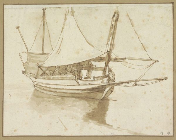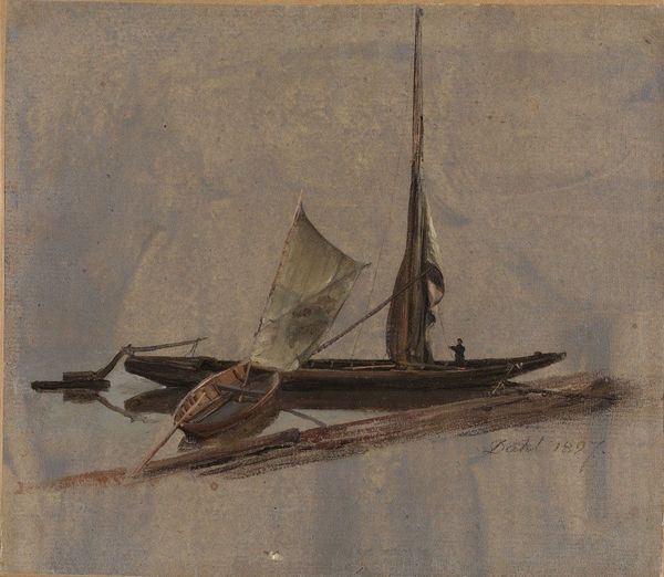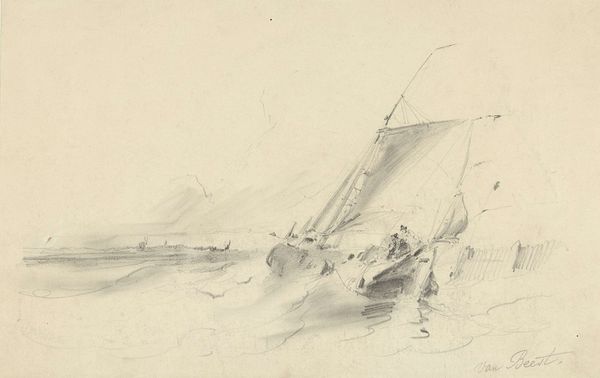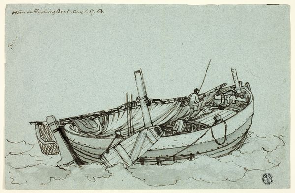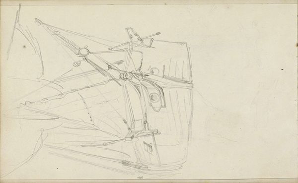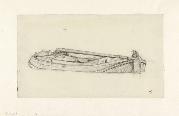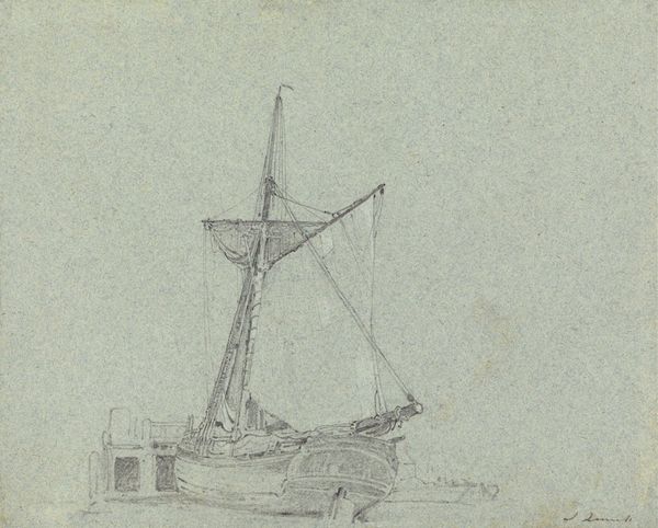 John Linnell sketched "A Rowing Boat at Twickenham" in pencil, capturing a scene that reflects the leisure and labor intertwined along the Thames. Linnell, who moved within intellectual circles that included William Blake, held complex views on industry versus nature. This drawing offers a glimpse into the lives of working-class individuals who operated these boats, often overlooked in favor of romanticized landscapes. The detailed rendering of the boat and the tools speaks to the culture of labor and the personal connection between workers and their means of livelihood. How did the working class feel, knowing their efforts would be appreciated by landscape painters such as Linnell? Consider the subtle politics inherent in landscape art of this period, where representations of nature often masked the social realities of the time. The drawing then, becomes more than a simple study; it’s an artifact of social and economic relationships.