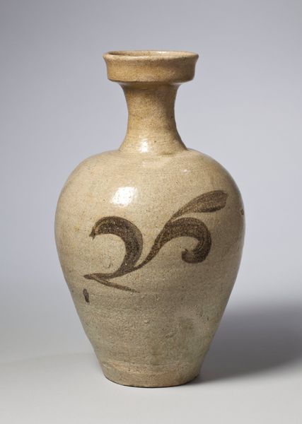 Curator: Here we have a stunning example of American Art Nouveau from the Van Briggle Pottery Company. This vase, created in 1902, resides here at the Metropolitan Museum of Art. Editor: My immediate impression is its earthy, almost subdued elegance. The matte glaze gives it a tactile, weighty feel, despite what I imagine is a relatively delicate stoneware body. Curator: Indeed. Van Briggle was known for his matte glazes, a result of experimentation with high-firing techniques. He drew inspiration from ancient Chinese ceramics he encountered at the 1900 Paris Exposition. It's also crucial to consider the social implications here. Art Nouveau arose in part as a reaction against industrialization, promoting handcrafted artistry over mass production. Editor: Exactly. This vase embodies that perfectly. The stylized, organic motifs—those poppy designs winding around the surface—aren't simply decorative; they speak to a longing for a closer connection with nature, a response to the rapidly changing urban landscape. You can almost see the maker’s hand at work, carefully sculpting the relief. Curator: Absolutely, and the material itself—the stoneware—is key. Unlike porcelain's refined delicacy, stoneware speaks to a more grounded, practical aesthetic. Van Briggle aimed to make art accessible, and the relative affordability of stoneware pottery allowed a wider audience to engage with his artistic vision. Editor: And think about how this piece functioned in the home. Beyond its aesthetic appeal, it's a vessel, meant to hold flowers, connecting the interior space with the outside world, further blurring the boundaries between art and life. Did Van Briggle engage directly with the laborers in his pottery, I wonder? Curator: Documentation shows that Van Briggle did emphasize a communal artistic process and credited his skilled workforce. So, looking at this "Vase," it is more than mere decoration; it reflects a specific cultural moment, a yearning for beauty amidst industrial progress. Editor: Right, and to reflect on how a revival of handcraft helped legitimize artists who worked outside established high art structures, creating an environment in which their contributions could be valuable and successful. Curator: I agree. Appreciating this vase encourages us to investigate our relationship to beauty, labor, and the things we use in our daily lives. Editor: Indeed, to reflect on the socio-political forces behind not just art creation but its reception and how we contextualize it today.