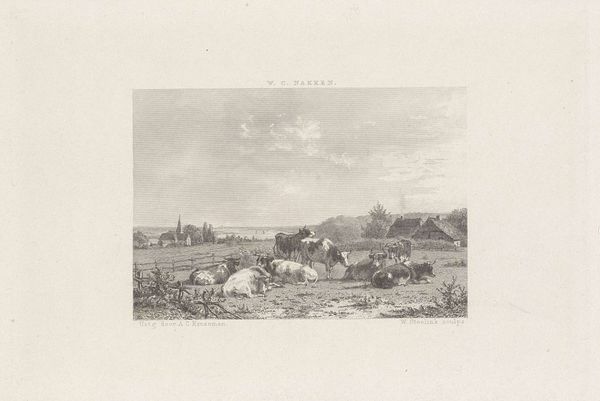 Editor: Here we have "Gezicht op een huis te Noord Deurningen," an etching by Carel Nicolaas Storm van 's-Gravesande, dating from 1851 to 1924. It has such a peaceful, pastoral feel. What strikes you about this piece? Curator: It’s interesting how this work fits into the larger context of 19th-century Realism, especially regarding the institutional embrace of rural subject matter. Notice the deliberate, almost documentary, style in the depiction of everyday life and agricultural work. How do you think this reflects broader social attitudes toward the countryside? Editor: I guess it shows a growing appreciation, or perhaps romanticization, of rural life at a time when industrialization was becoming increasingly dominant. Do you think the artist was making any kind of political statement? Curator: Perhaps. These depictions often subtly reinforced national identities and social hierarchies. The level of detail presented invites the viewer to find a personal connection, seemingly untouched by the industrialized world. Yet, remember, art doesn’t exist in a vacuum. Even "realistic" portrayals are carefully constructed narratives that are funded by and catered to particular social circles and the political goals thereof. Considering that, does your interpretation of the peace differ at all? Editor: It does give me something else to think about. I now see that seemingly simple, pastoral scene with layers of socio-political context underneath. Curator: Precisely! Understanding those layers enriches our experience and challenges assumptions about the artist's intention and reception of work. Editor: Thanks, it's fascinating to look at it this way. It's given me a whole new appreciation for historical context.