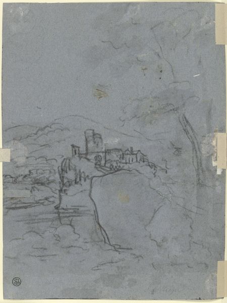 Curator: Here we have John Ruskin's "Town of Schaffhausen: Castle and Turrets." It is currently housed at the Harvard Art Museums. Editor: My first thought? It’s a daydream. Fleeting, almost like catching a glimpse of something magical from the corner of my eye. Curator: Ruskin was deeply invested in accurately portraying the built environment, especially medieval structures, as a means of understanding social history. Editor: That brown paper really grounds the castle though, doesn't it? Stops it from floating away entirely. Makes you wonder what Ruskin saw in Schaffhausen. Curator: He believed architecture embodied a society’s moral and spiritual values, and in his work, he defended the value of art in society and in the face of industrialization. Editor: It’s interesting how he suggests form with such minimal detail. The castle becomes less about bricks and mortar and more about...feeling. Curator: Absolutely. Ruskin’s work reminds us that the built world is not just physical, but also a repository of cultural memory and values. Editor: A glimpse into what Ruskin valued, a feeling suspended in time. I could stare at this for hours and just imagine.