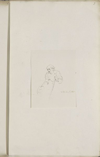 Curator: My eye is immediately drawn to the subject, almost overwhelmed by negative space; it feels both assertive and understated. Editor: Indeed. What we're looking at here is Edouard Manet's 1869 pencil drawing, "Portret van Charles Baudelaire met hoge hoed", or "Portrait of Charles Baudelaire with a Top Hat." Curator: Knowing this is a sketch made of graphite by Manet contextualizes the medium. What does the mechanical use of the pencil reveal about Manet's studio practice and potentially mass-produced element of his art, and their relationship? Editor: I see your point about materials, but I'm drawn to how this portrait encapsulates Baudelaire's persona. That severe profile, framed by the hat, it's like a study in dandyism, an embrace of the artificial. What sociopolitical forces might prompt the two men to adopt and adapt the "dandy" subculture during Haussmannization in Paris? Curator: The deliberate choice of pencil also challenges any conventional boundary, right? Graphite’s industrial roots position this piece outside the gilded world of high art of the time. Editor: Interesting take, though the Romanticism that would inform Baudelaire's view that fashion may be used for a pursuit of an ideal is relevant, and worth recognizing as well. It begs us to think about gender and identity within rigid, conformist cultures. Curator: I would also add that the use of sketching offers a lens through to Manet's creative decision making, his working through form. Editor: Exactly. This sketch reminds us of art’s vital role in understanding social identities and lived realities in nineteenth century Paris. Curator: And even beyond that! The art world today has changed thanks to works just like these.