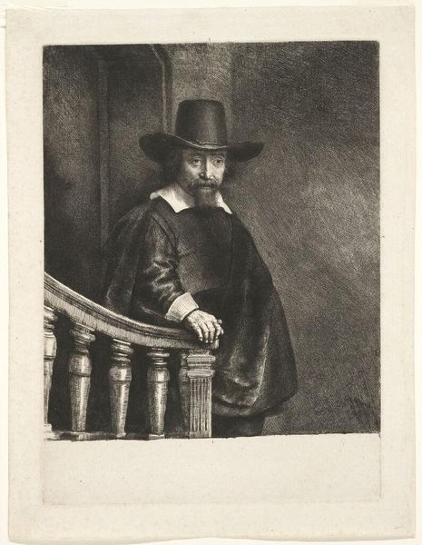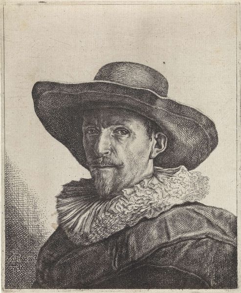 Jan Stolker created this portrait of a man, possibly Rembrandt's father, Harmen Gerritsz. van Rijn, using pen and gray ink, sometime in the 18th century. Notice how Stolker’s work here relies on a striking contrast between light and shadow to draw the eye. The deep blacks define the contours of the subject, while the lighter grays give depth to the face and clothing. This chiaroscuro effect dramatizes the figure, creating a sense of weight and presence. The composition, tightly focused on the upper body, emphasizes the face and the expressive details of the man's attire. The hat, a complex form rendered in nuanced shades, sits atop the figure, adding to the air of mystery and importance. By using a semiotic system of signs, we see that each element—the clothing, the hat, the facial expression—contributes to a larger narrative. This narrative evokes a sense of history and identity. Such formal choices encourage viewers to look beyond the surface, inviting endless interpretation and re-interpretation.